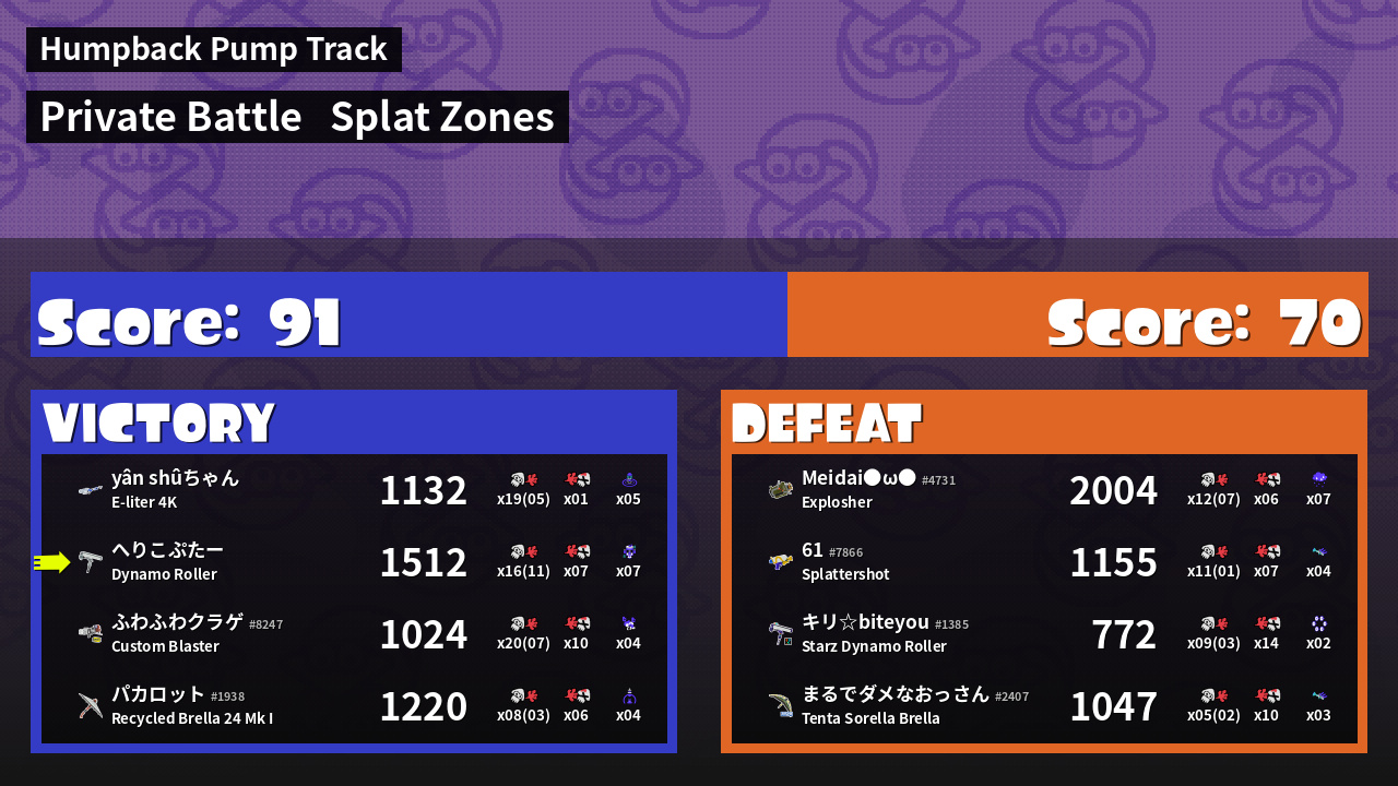 | Mode | Splat Zones - Private Battle | ||