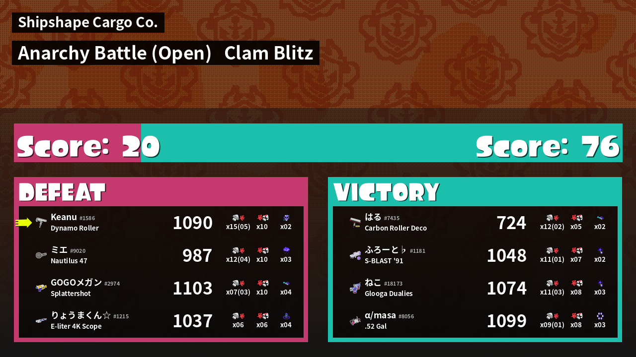 | Mode | Clam Blitz - Anarchy Battle (Open) | ||