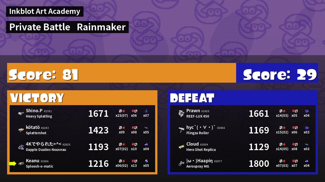 | Weapon | Sploosh-o-matic ( Curling Bomb / Ultra Stamp) | ||