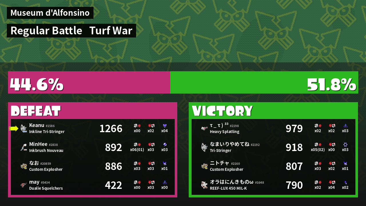| Medals | #1 Turf Inker #1 Enemy-Base Inker #1 Damage Taker | ||