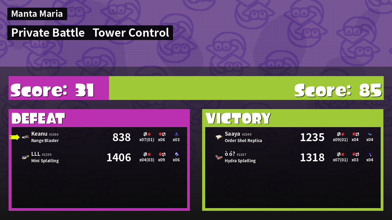 | Medals | #1 Overall Splatter #1 Score Booster Record-Score Setter | ||