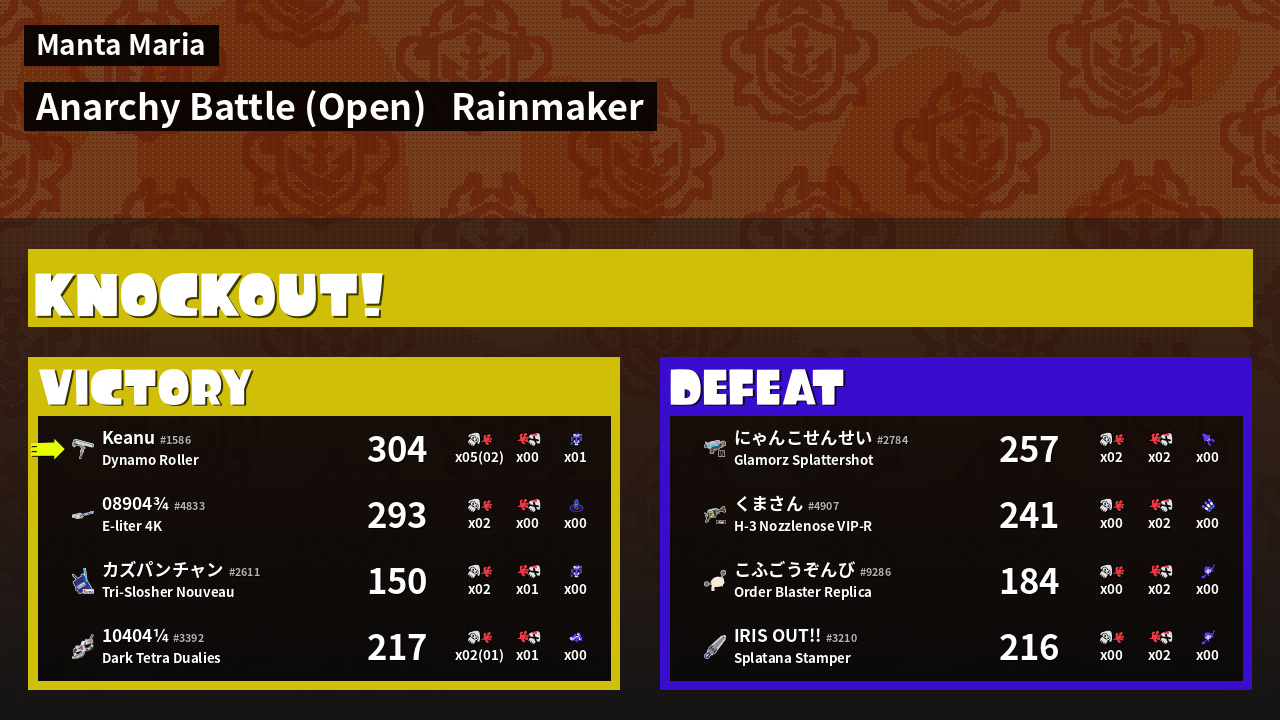| Mode | Rainmaker - Anarchy Battle (Open) | ||