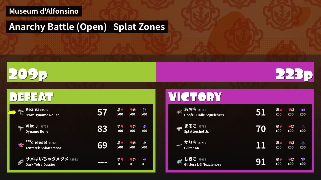 | Mode | Splat Zones - Anarchy Battle (Open) | ||