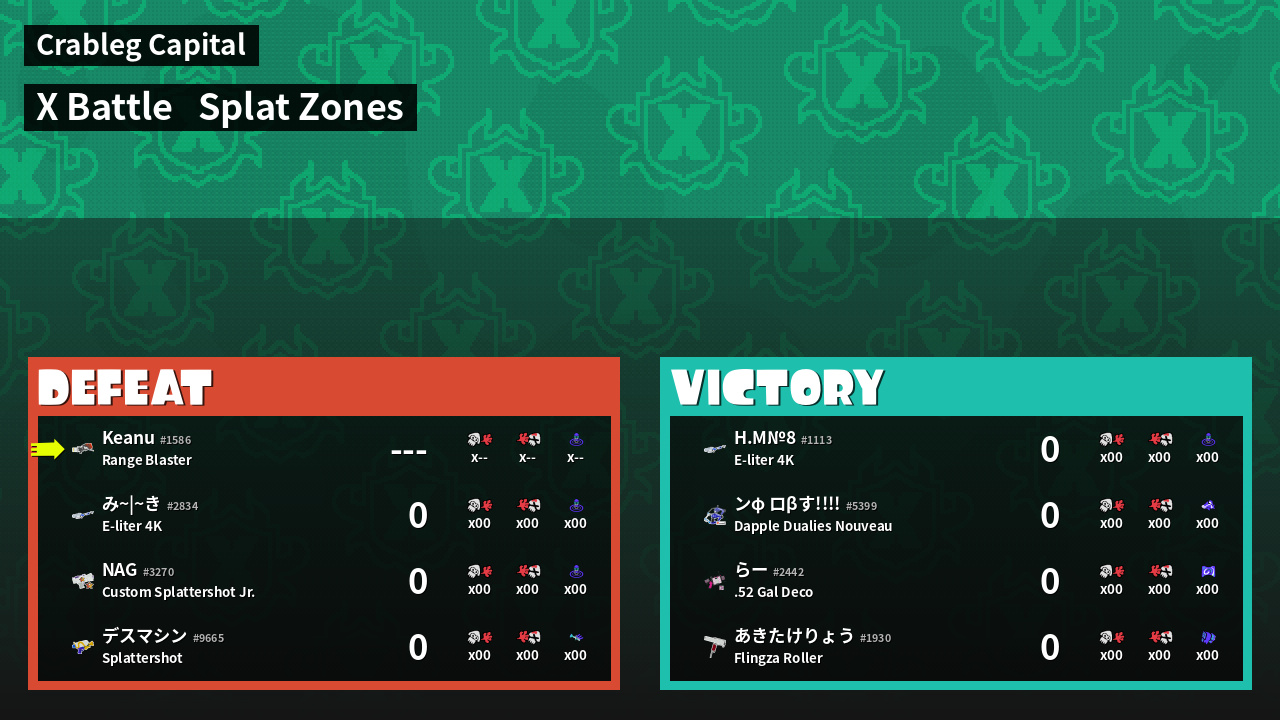 | Mode | Splat Zones - X Battle | ||