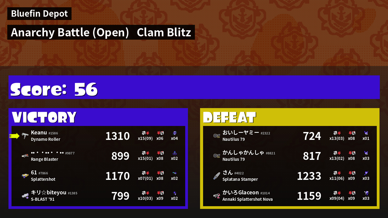 | Mode | Clam Blitz - Anarchy Battle (Open) | ||