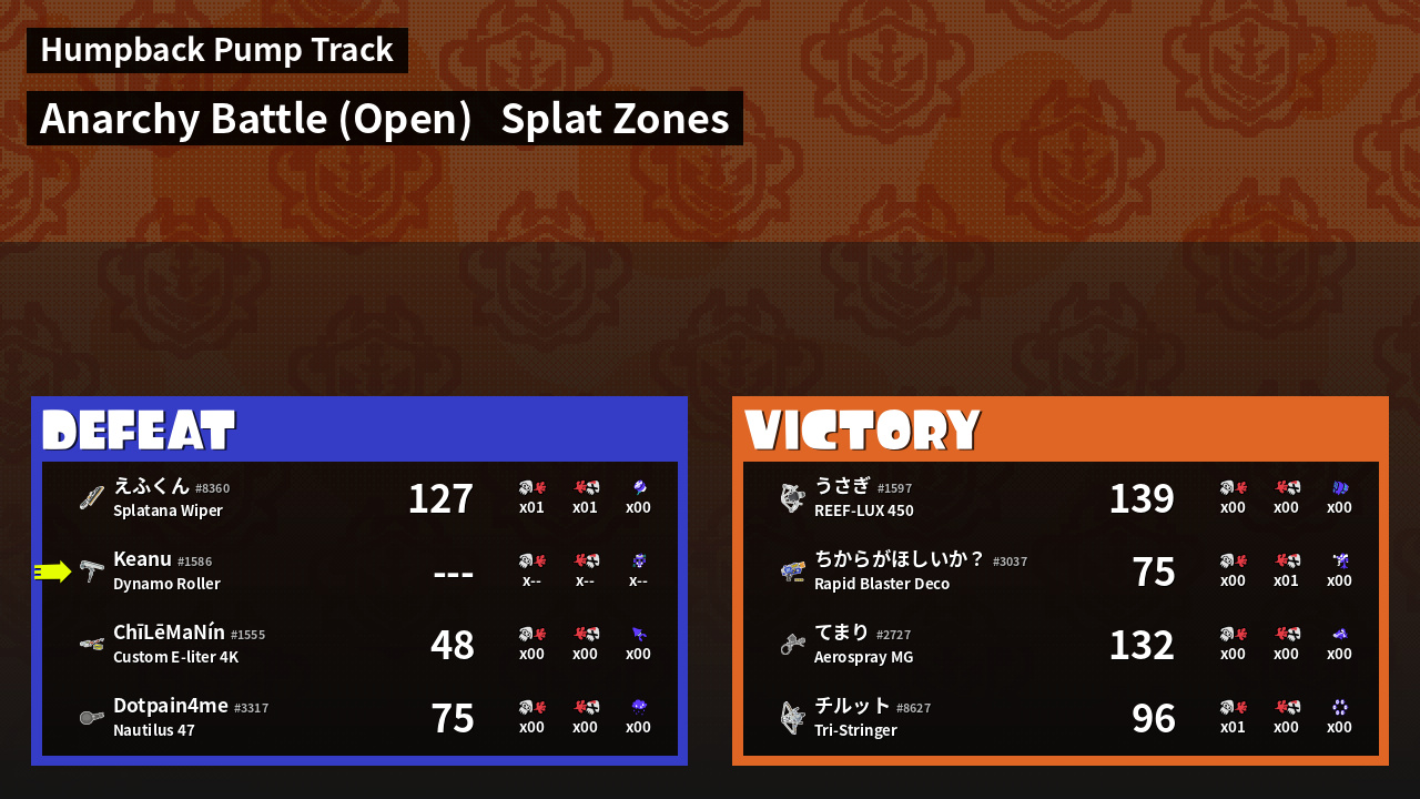 | Mode | Splat Zones - Anarchy Battle (Open) | ||