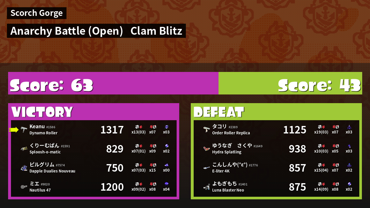 | Mode | Clam Blitz - Anarchy Battle (Open) | ||