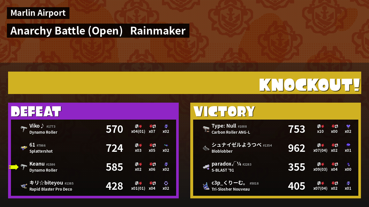 | Mode | Rainmaker - Anarchy Battle (Open) | ||