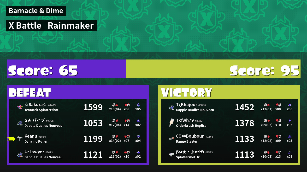 | Medals | #1 Overall Splatter #1 Enemy Splatter #1 Rainmaker Stopper | ||