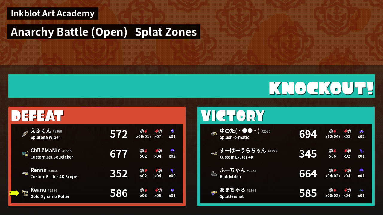 | Mode | Splat Zones - Anarchy Battle (Open) | ||