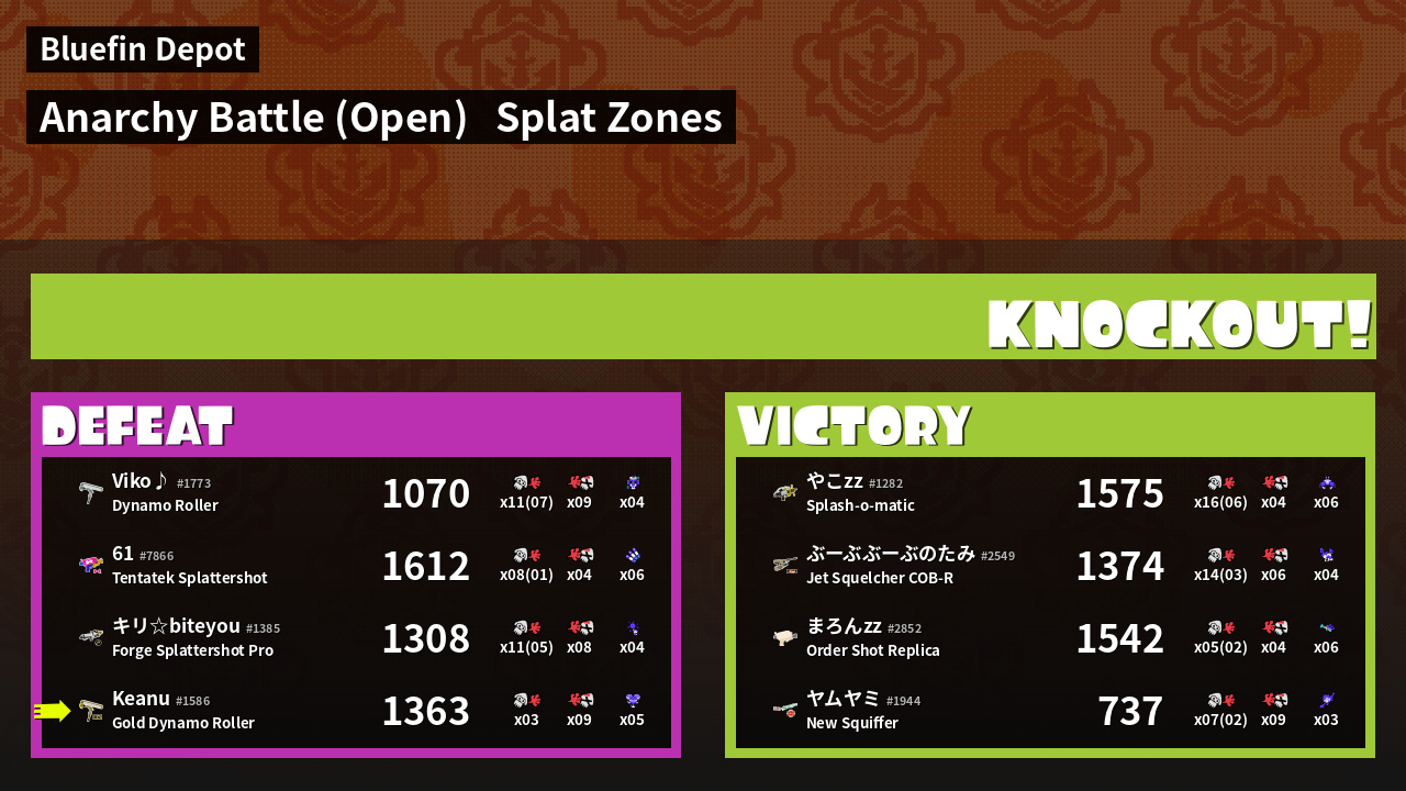 | Mode | Splat Zones - Anarchy Battle (Open) | ||
