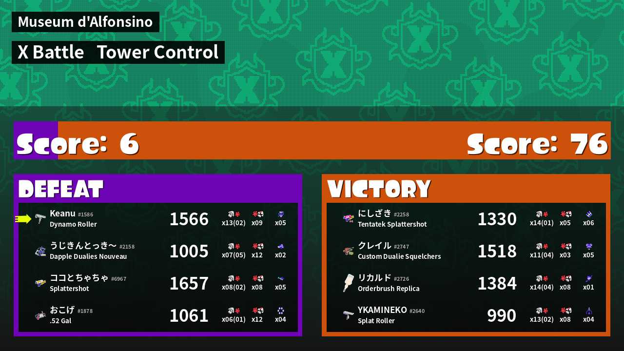 | Mode | Tower Control - X Battle | ||