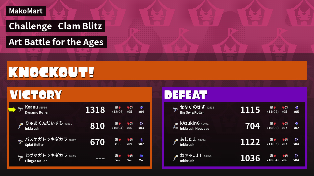 | Medals | #1 Overall Splatter #1 Clam Carrier #1 Turf Inker | ||