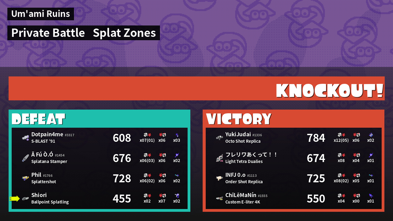 | Mode | Splat Zones - Private Battle | ||