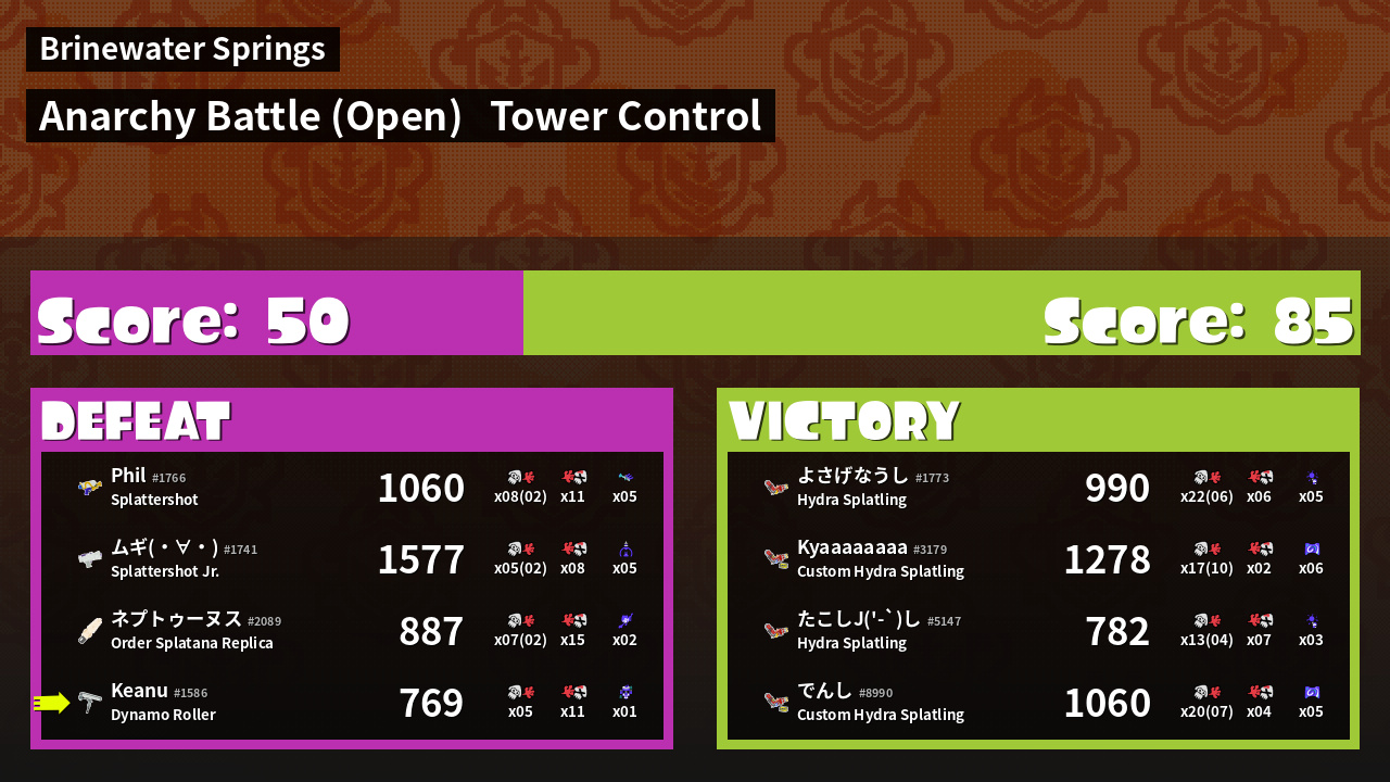 | Mode | Tower Control - Anarchy Battle (Open) | ||