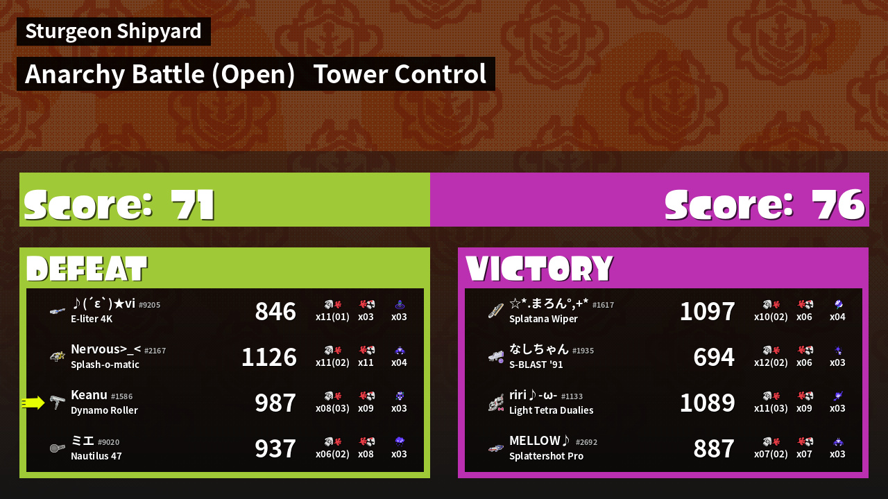 | Mode | Tower Control - Anarchy Battle (Open) | ||