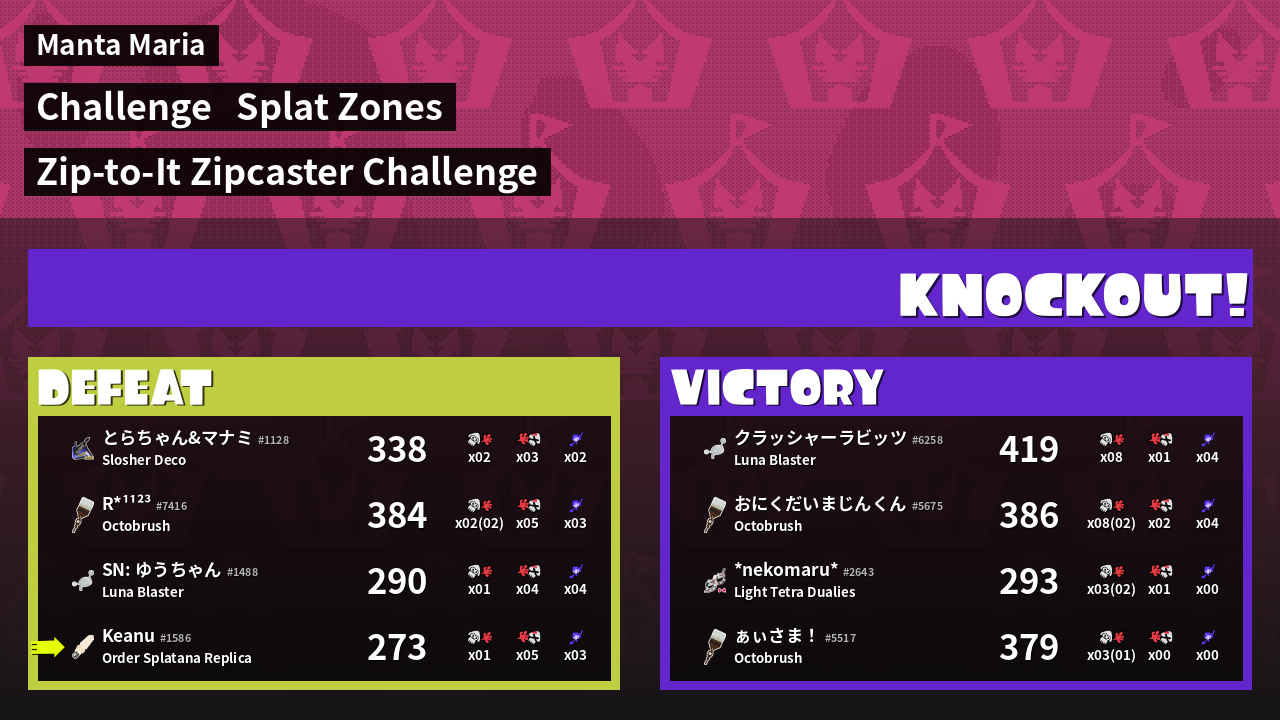 | Medals | #1 Splat Zone Hero #1 Zipcaster User #2 Splat Zone Inker | ||