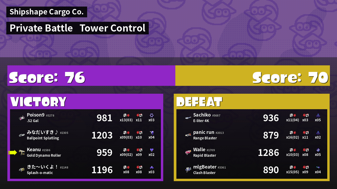 | Weapon | Gold Dynamo Roller ( Splat Bomb / Super Chump) | ||