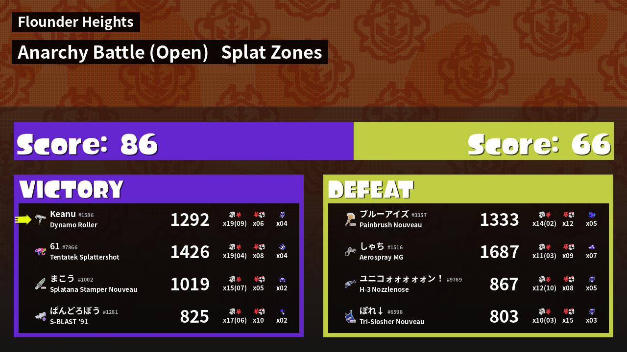 | Mode | Splat Zones - Anarchy Battle (Open) | ||