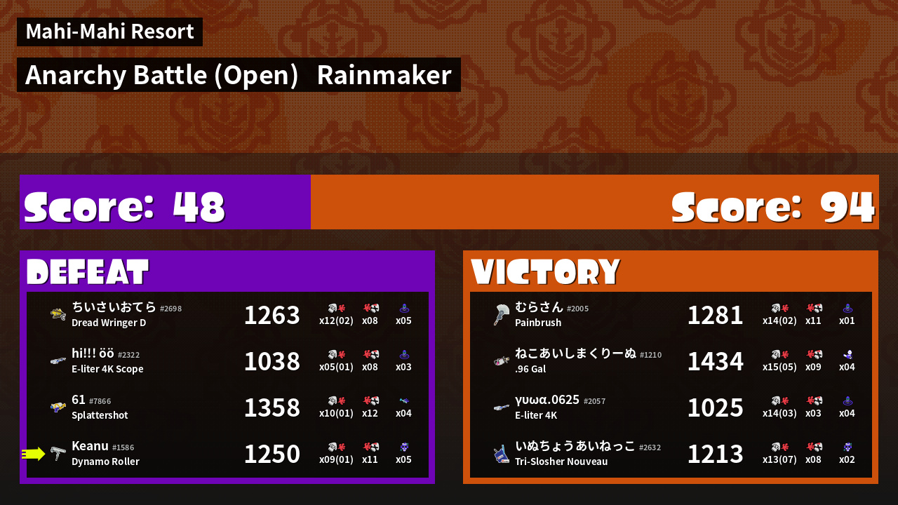 | Mode | Rainmaker - Anarchy Battle (Open) | ||