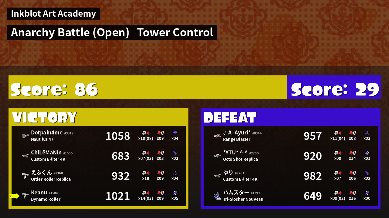 | Mode | Tower Control - Anarchy Battle (Open) | ||