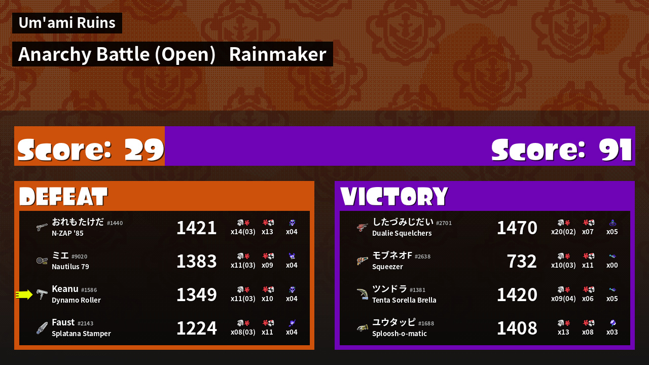 | Mode | Rainmaker - Anarchy Battle (Open) | ||