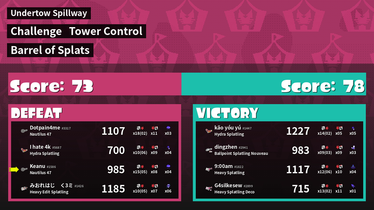 | Challenge | Barrel of Splats Muster as much firepower as you can<br />in this battle of the splatlings! | ||