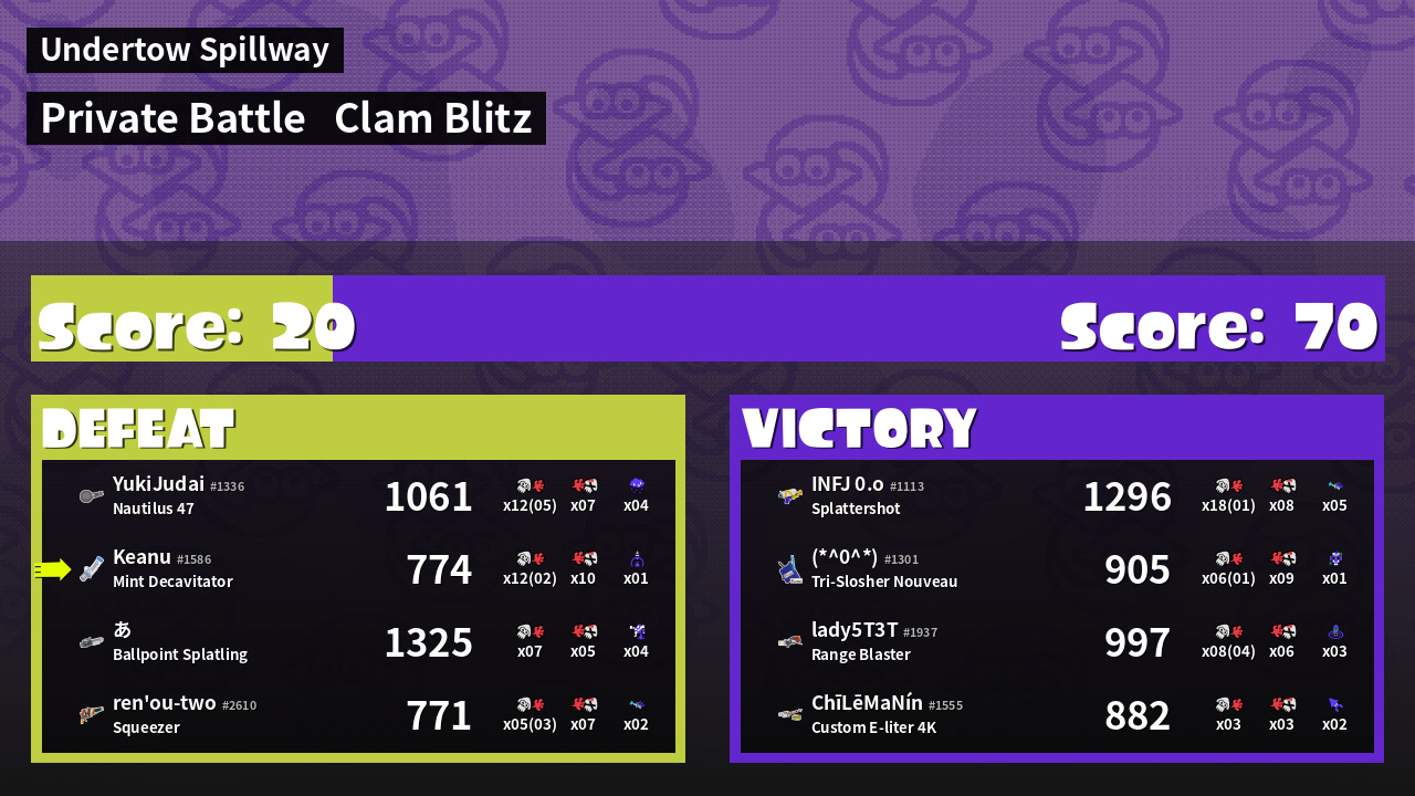 | Medals | #1 Overall Splatter #1 Score Booster #1 Enemy Splatter | ||