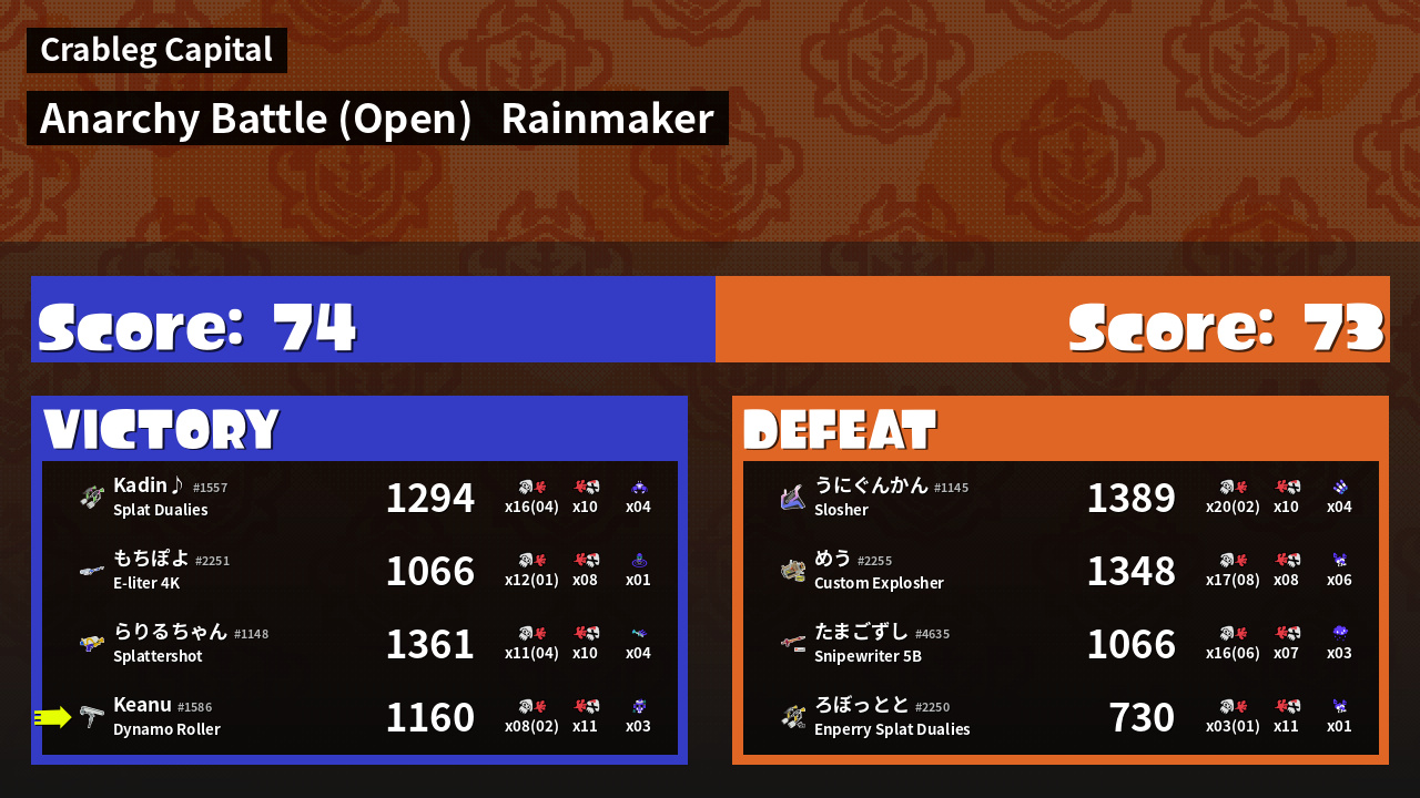| Mode | Rainmaker - Anarchy Battle (Open) | ||