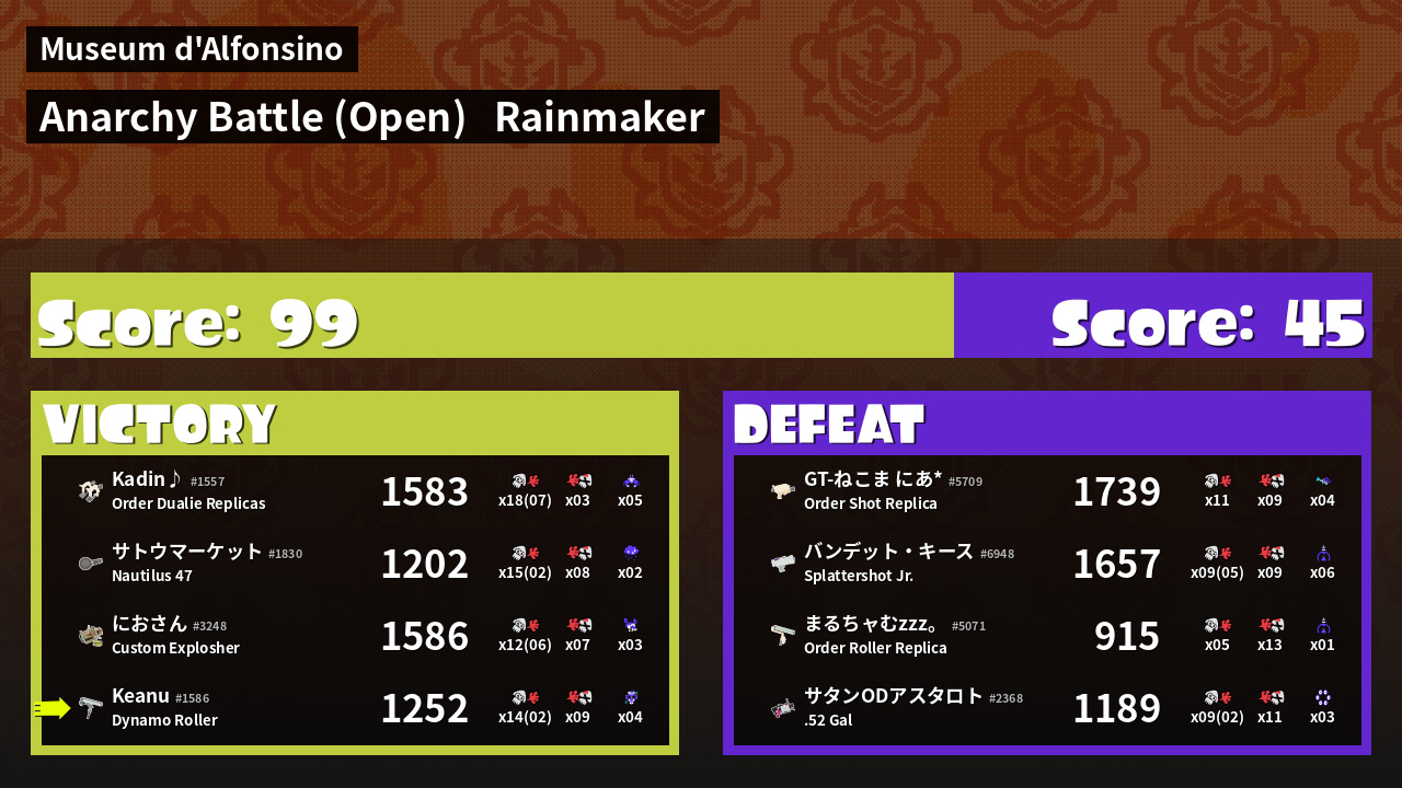 | Mode | Rainmaker - Anarchy Battle (Open) | ||
