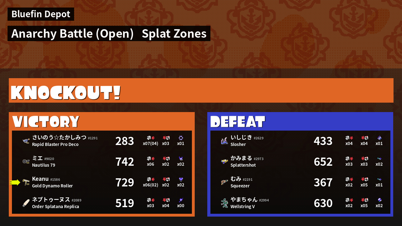| Mode | Splat Zones - Anarchy Battle (Open) | ||