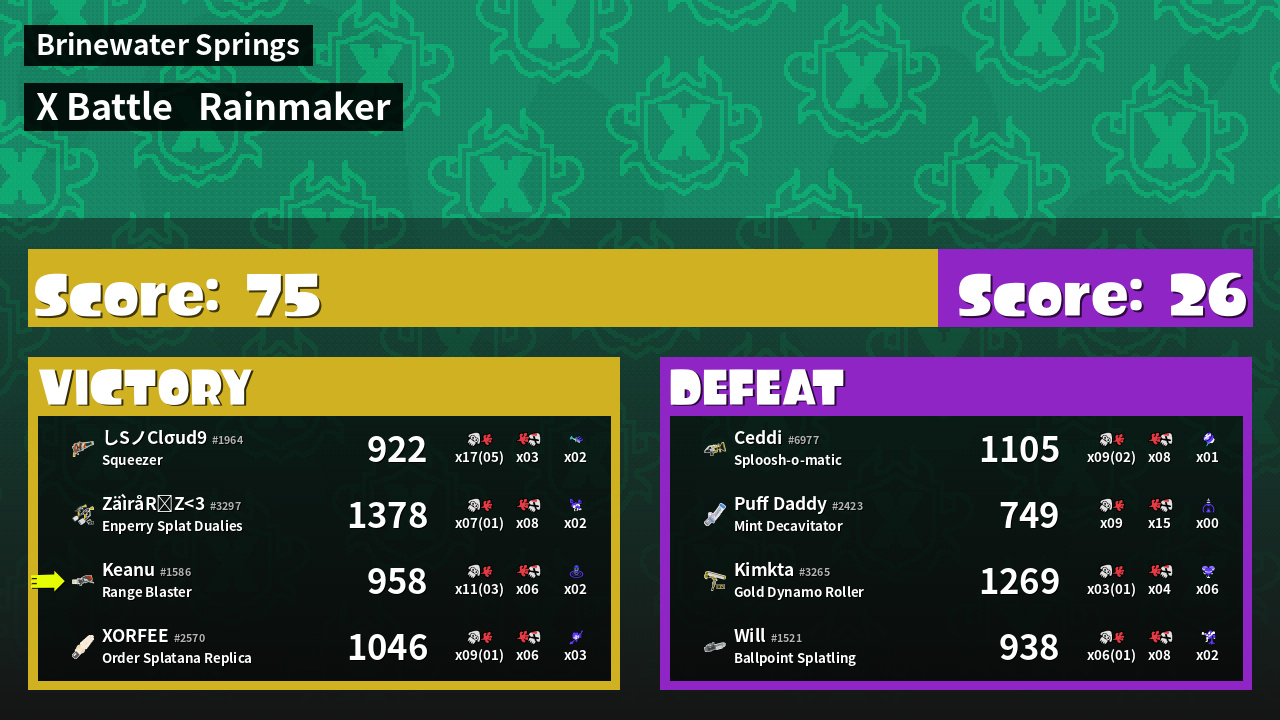 | Medals | #1 Super Jump Spot #1 Rainmaker Stopper #1 Ink Consumer | ||