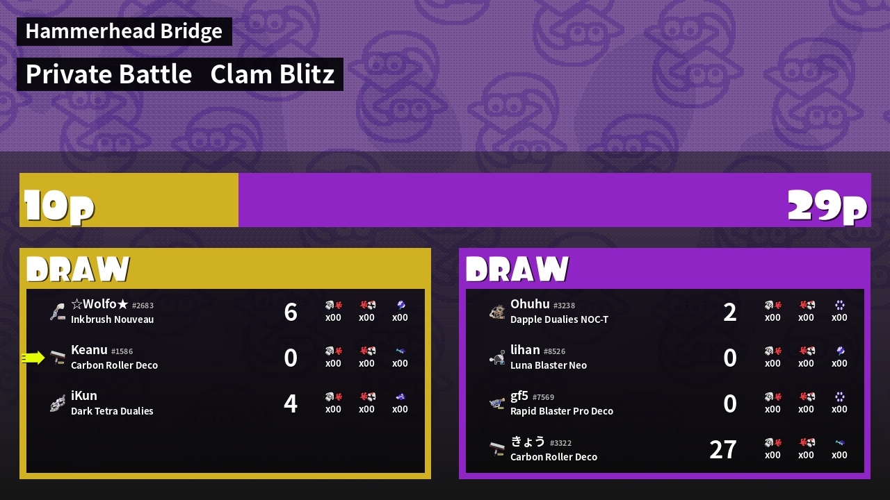 | Mode | Clam Blitz - Private Battle | ||