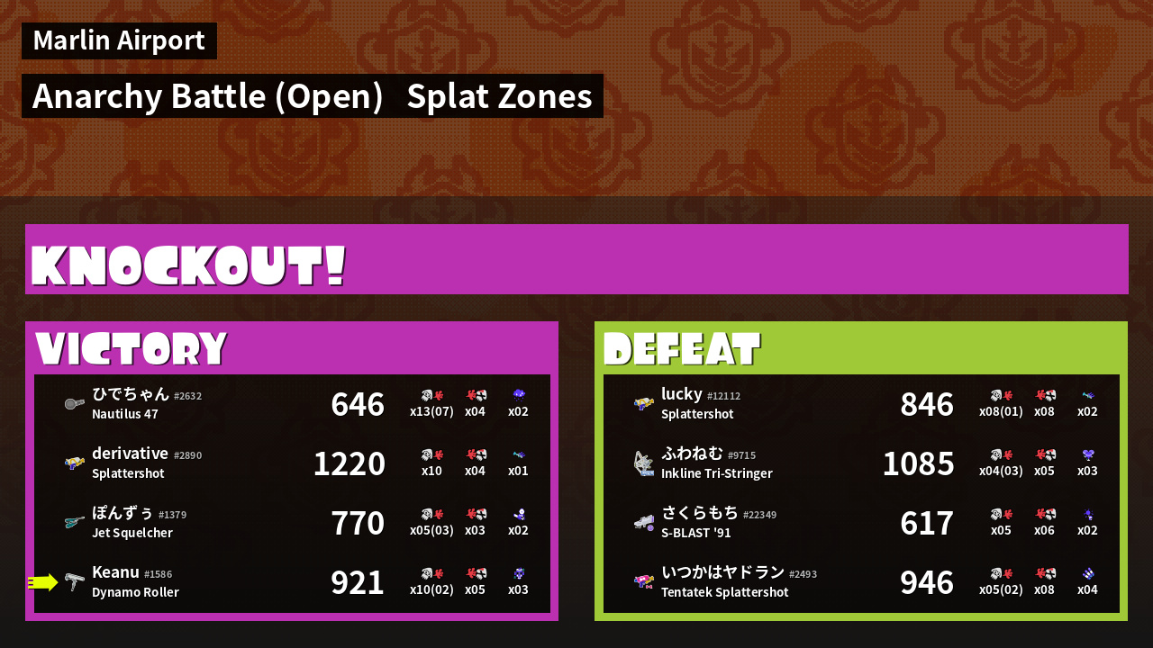 | Mode | Splat Zones - Anarchy Battle (Open) | ||