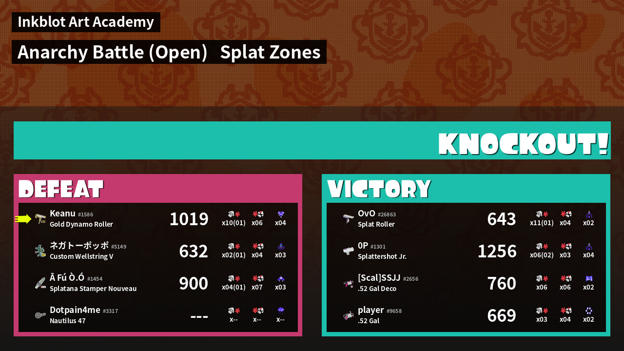 | Mode | Splat Zones - Anarchy Battle (Open) | ||