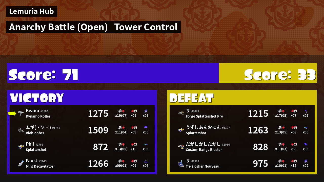 | Mode | Tower Control - Anarchy Battle (Open) | ||