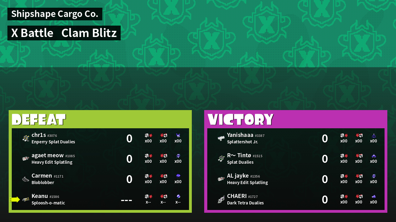 | Mode | Clam Blitz - X Battle | ||
