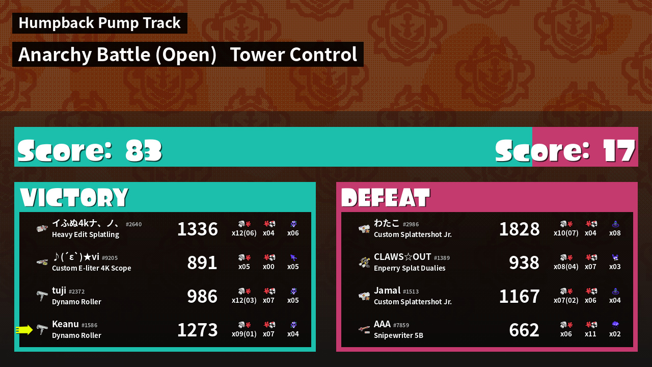 | Mode | Tower Control - Anarchy Battle (Open) | ||