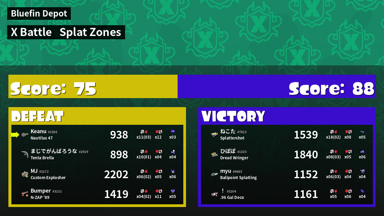 | Medals | #1 Overall Splatter #1 Splat Zone Guard #1 Popular Target | ||