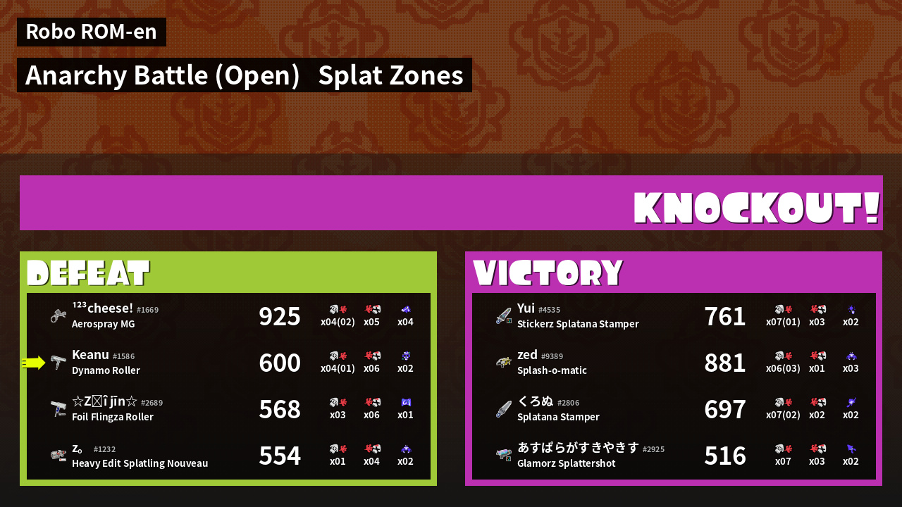 | Mode | Splat Zones - Anarchy Battle (Open) | ||