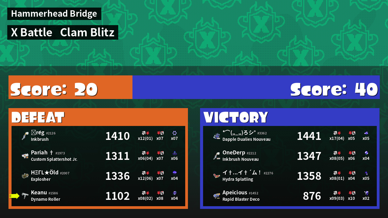 | Mode | Clam Blitz - X Battle | ||