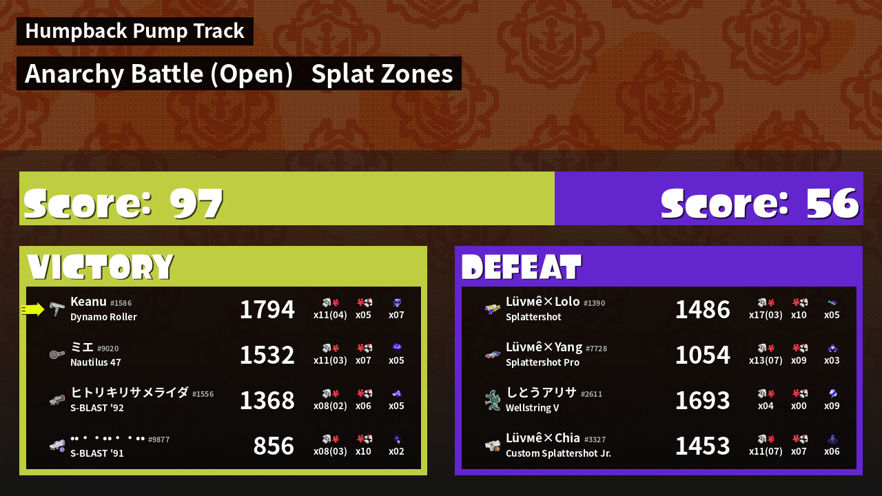 | Mode | Splat Zones - Anarchy Battle (Open) | ||