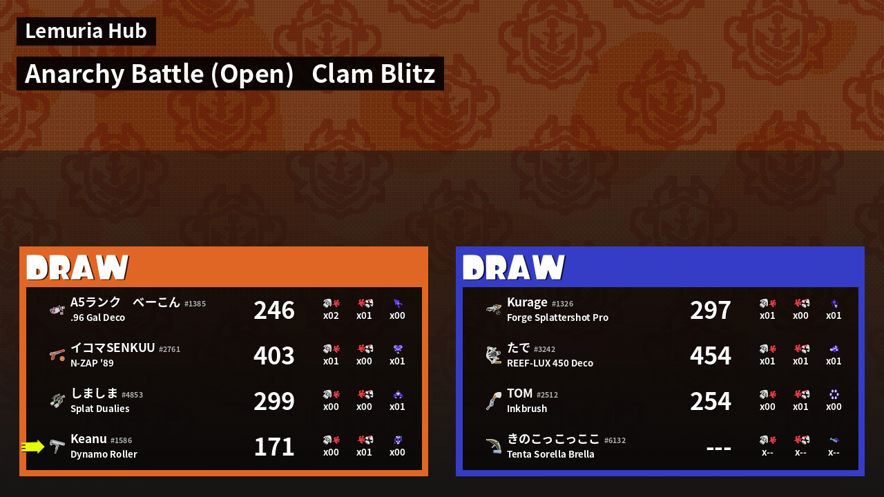 | Mode | Clam Blitz - Anarchy Battle (Open) | ||