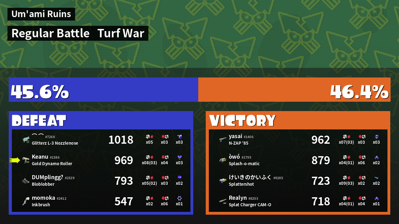 | Weapon | Gold Dynamo Roller ( Splat Bomb / Super Chump) | ||