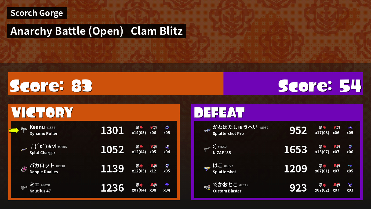 | Mode | Clam Blitz - Anarchy Battle (Open) | ||