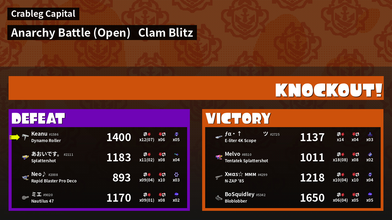 | Mode | Clam Blitz - Anarchy Battle (Open) | ||