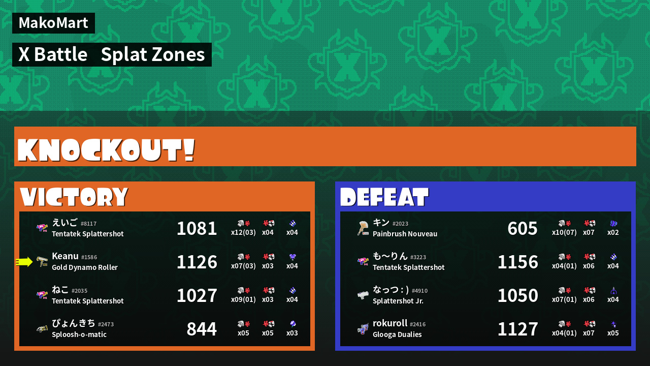 | Mode | Splat Zones - X Battle | ||