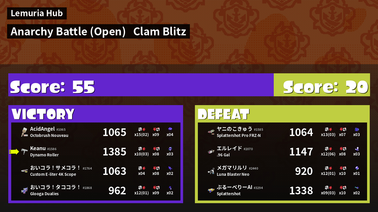 | Mode | Clam Blitz - Anarchy Battle (Open) | ||