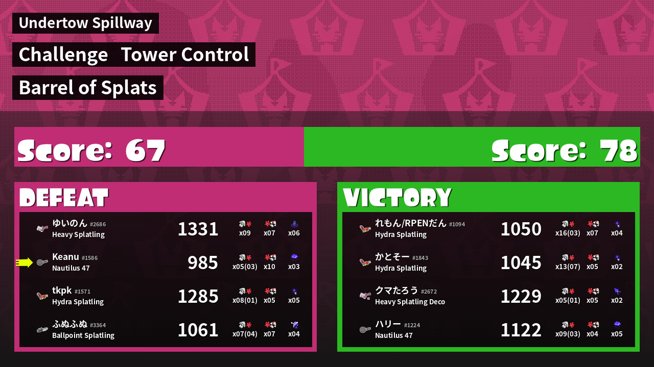| Challenge | Barrel of Splats Muster as much firepower as you can<br />in this battle of the splatlings! | ||