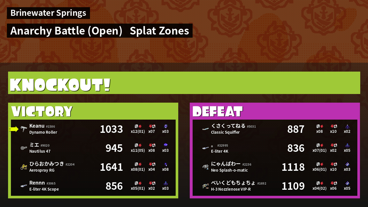 | Mode | Splat Zones - Anarchy Battle (Open) | ||